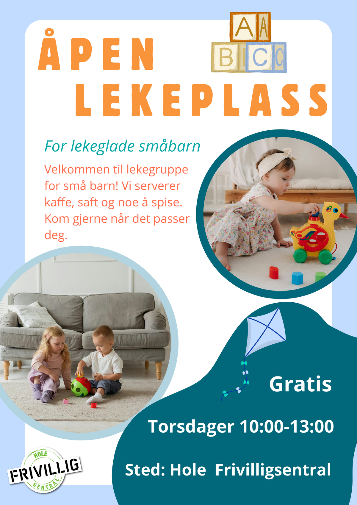 Ny aktivitet! Åpen lekeplass for småbarn, torsdager 10-13. Vi serverer kaffe, saft og noe godt å spise. Tiltaket er gratis. Velkommen!
